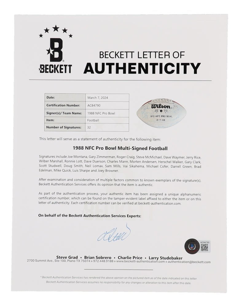 - Signatures from 32 NFL Legends: Celebrate the stars who made the 1988 NFC Pro Bowl unforgettable.
