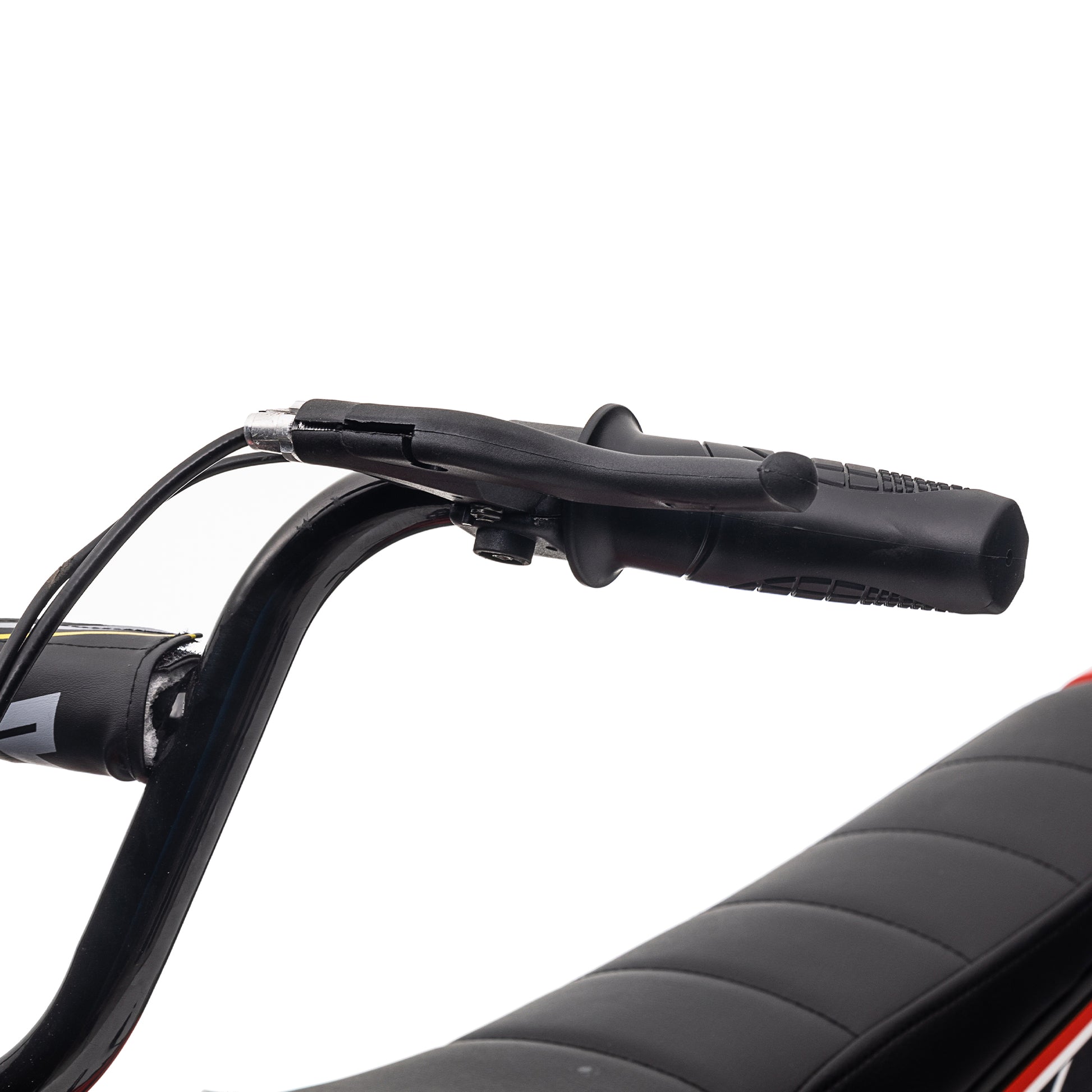 With both a low-speed mode at 10 kilometers per hour (6.2 mph) and a high-speed mode at 23 kilometers per hour (14.29 mph), this bike offers versatility for different riding scenarios, from leisurely exploration to exciting speed bursts. Comfortable Leather Seat: Designed with a plush leather seat for added comfort during long rides, ensuring a cozy and enjoyable experience. Safe and Lead-Free Materials: Crafted from materials that are free of lead, providing parents with peace of mind knowing that their child's safety is a top priority. Durable Construction: Made from high-quality Polypropylene material with reinforced iron components, ensuring durability and longevity, even during rough play. Powerful 350-Watt Motor: The bike boasts a robust 350-watt electric motor, delivering the necessary power for thrilling rides and off-road adventures.