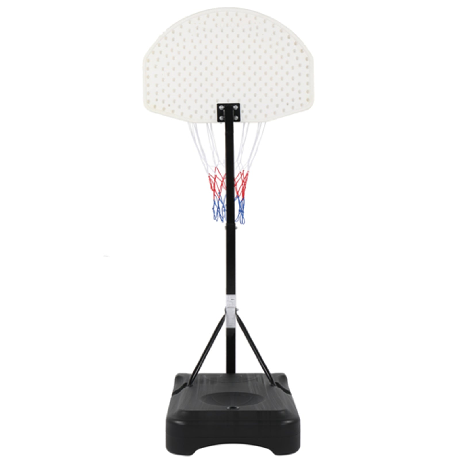 Make pool time even more fun with this 28" x 19" Backboard Adjustable Pool Basketball Hoop System Stand Kid Poolside Swimming Water. The entire family will love it as the adjustable height means that kids and adults alike can get in on the fun. Set up is easy with no tools needed for assembly or adjustment. Simply fill the base with sand or water and the entire hoop stays in place until you're ready to move it. Convenient wheels make relocation a snap. The water resistant nylon net means you won't be worrying about replacing it anytime soon. Bring the ultimate addition to your pool home today and be the hero of your family all summer long.Features: