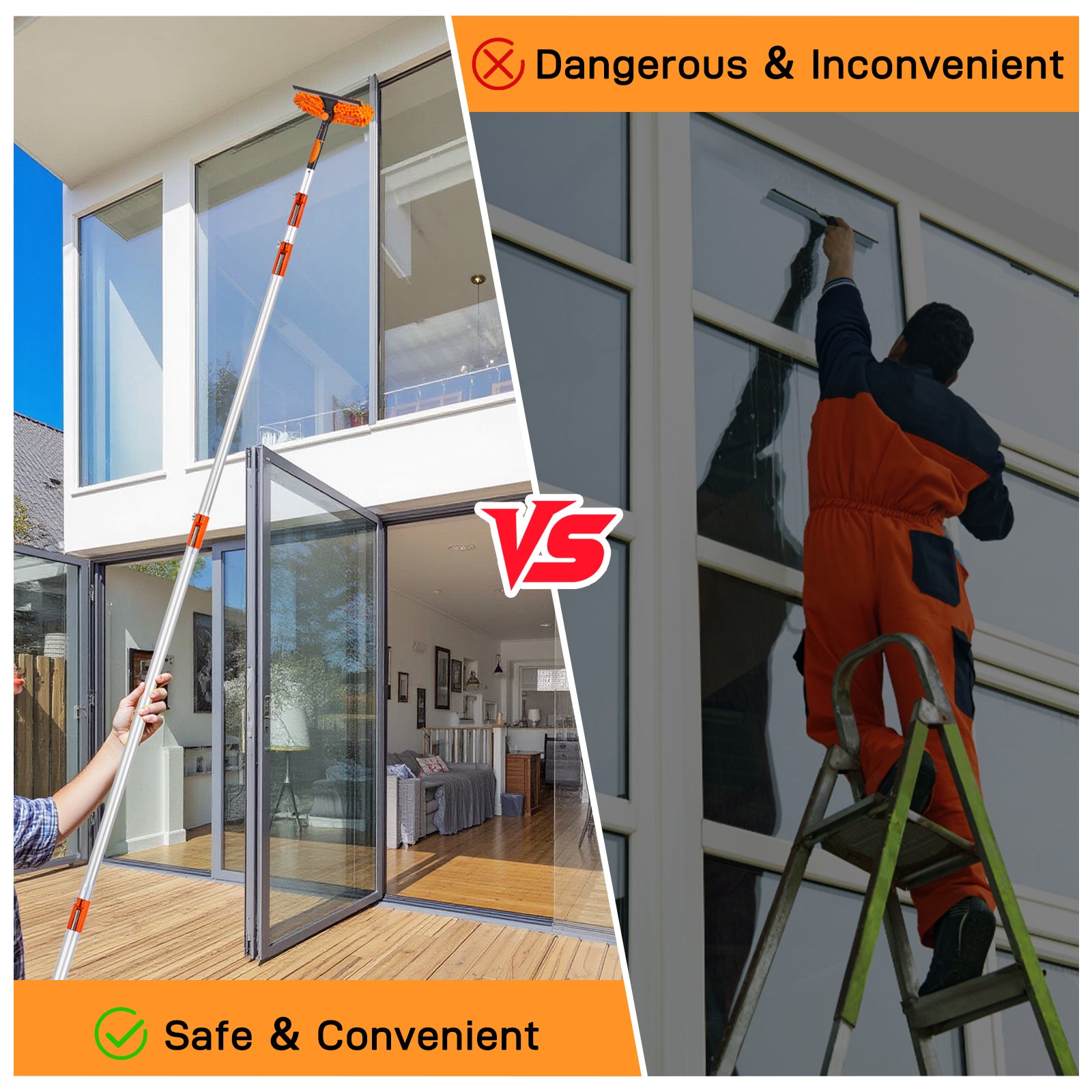 Multiple Uses: This cleaning kit meets all the cleaning needs from indoors to outdoors, from high places to low places, and from the roof to the garage.
