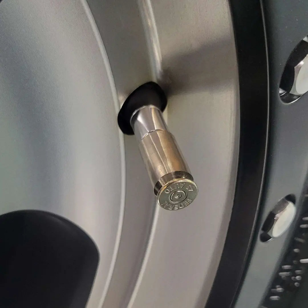 - Show off your love of guns with these 45 caliber nickel bullet valve stem caps