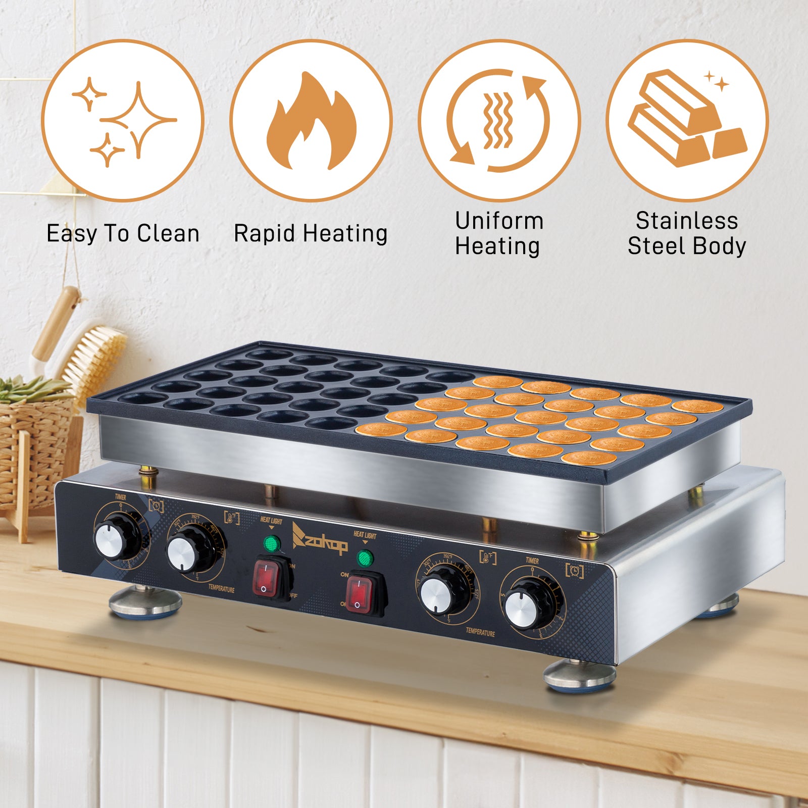 Introducing our 50-Well Rectangular Non-Stick Pancake and Waffle Maker, the ultimate kitchen appliance for creating perfectly golden, crispy, and delicious mini pancakes and waffles. Designed with 50 individual rectangular wells, this versatile machine allows you to bake multiple mini treats at once, making it ideal for family gatherings, brunch parties, or any occasion where you want to serve a variety of sweet delights. The non-stick surface ensures that each mini pancake or waffle releases easily, providing a flawless, mess-free cooking experience every time. Whether you're a seasoned chef or a beginner in the kitchen, this user-friendly and efficient appliance is sure to become a favorite in your home.