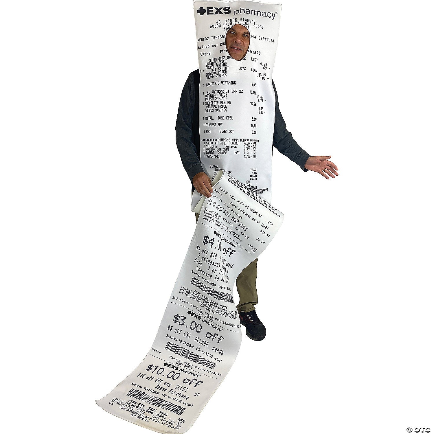 Embrace the humor and nostalgia of feeling like your parents with the Adult Exs-Ively Long Pharmacy Receipt. This unique and eye-catching Halloween costume is designed as a tunic style outfit, making it a quick and easy way to transform yourself for any costume event. The over-the-head tunic is comfortable to wear and features printed graphics on the front that replicate an exceptionally long pharmacy receipt, adding a touch of whimsy to your ensemble.