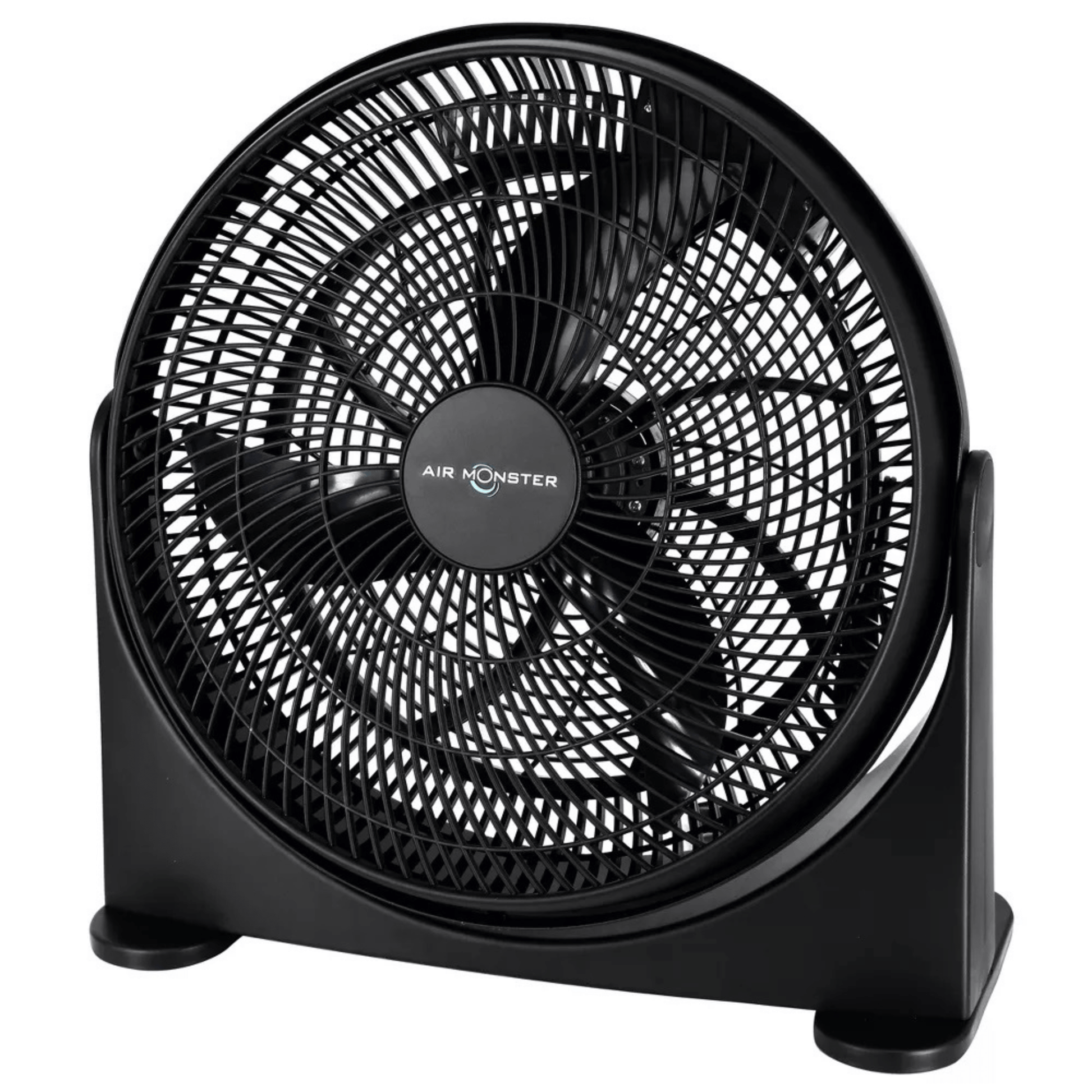 Cool down your favorite spaces with the 16-inch, 3-speed fan by Air Monster. Ideal for medium or large rooms requiring high-volume air movement, this fan features an three-wing blade construction and a sturdy base. The fan can be angled up or down at various degrees to meet your circulation needs. The easy-access control dial at the back offers three speed options, and the built-in handle and lightweight design make it easy to move from room to room. This fan comes fully assembled out of the box for a hassle-free setup—just plug it in and enjoy the cooling effect!