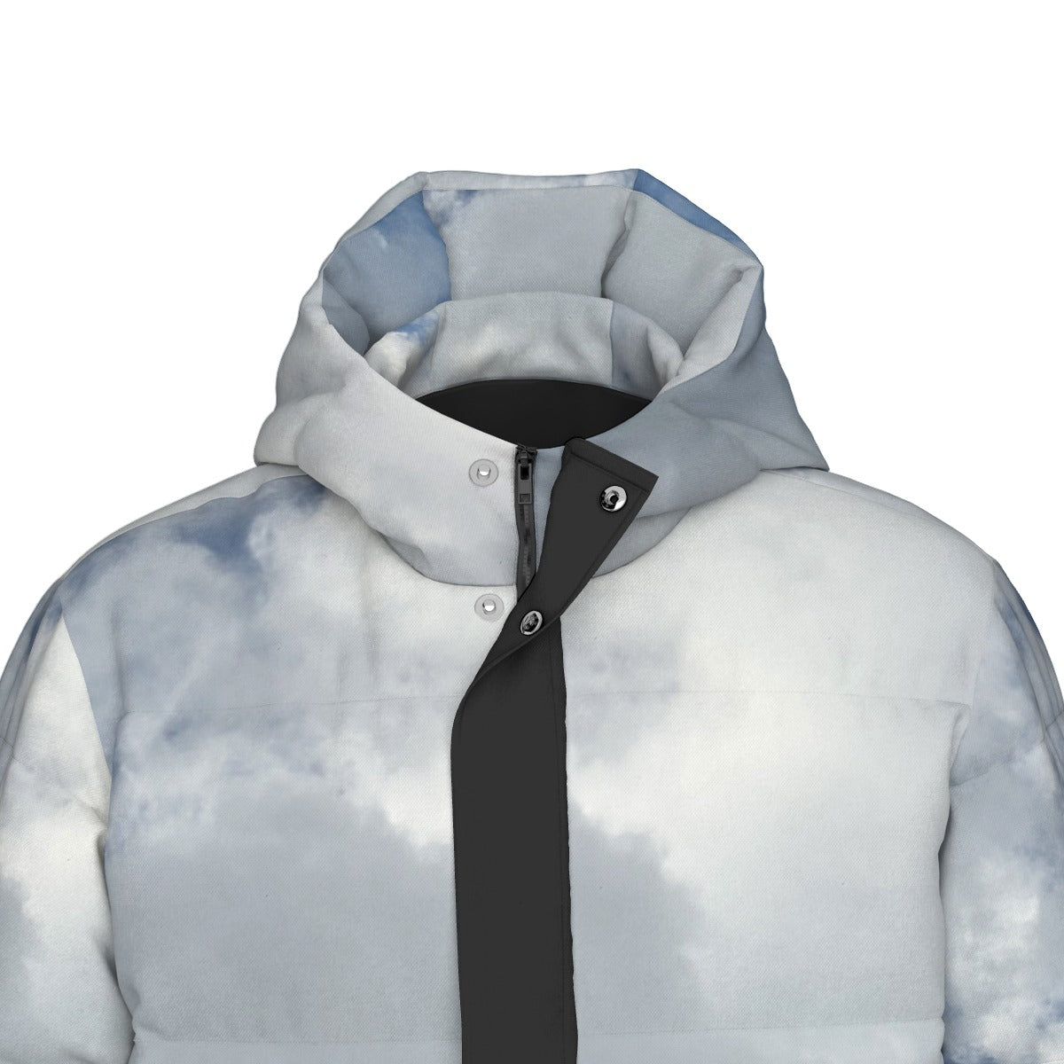 NEW!!! (CLOUDS front rear blk stripe hoodie interior) Unisex Long Down Jacket