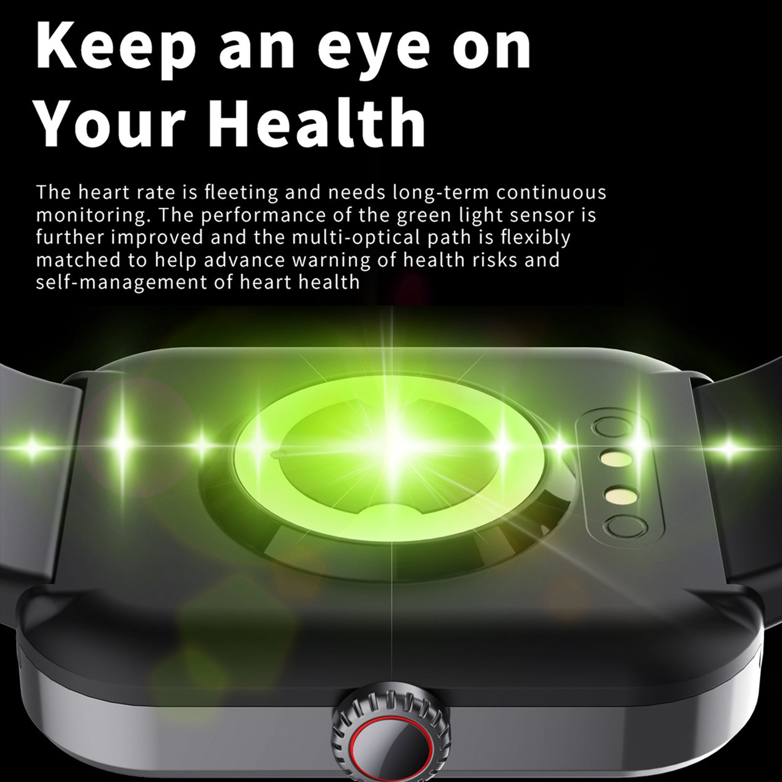 - With an optical heart rate sensor and an LED light on the back of the watch, this smartwatch can monitor body healthy levels continuously, providing high precision readings at all times. It also has an advanced PPG biological tracking optical sensor that enables you to measure and adjust your health status easily after work or exercise.