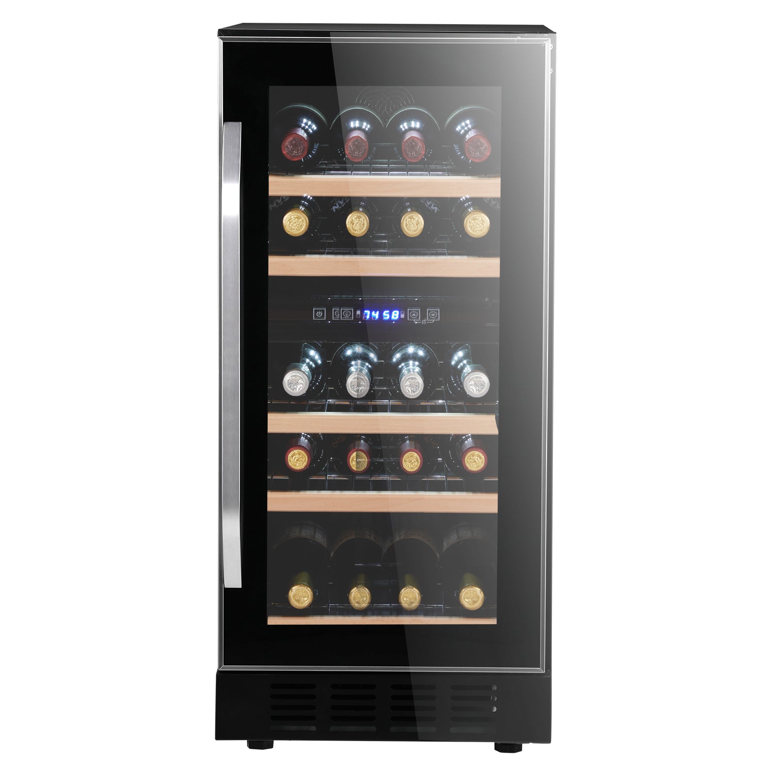 2. Wine Capacity: 26 bottles (20 in upper zone, 6 in lower zone)