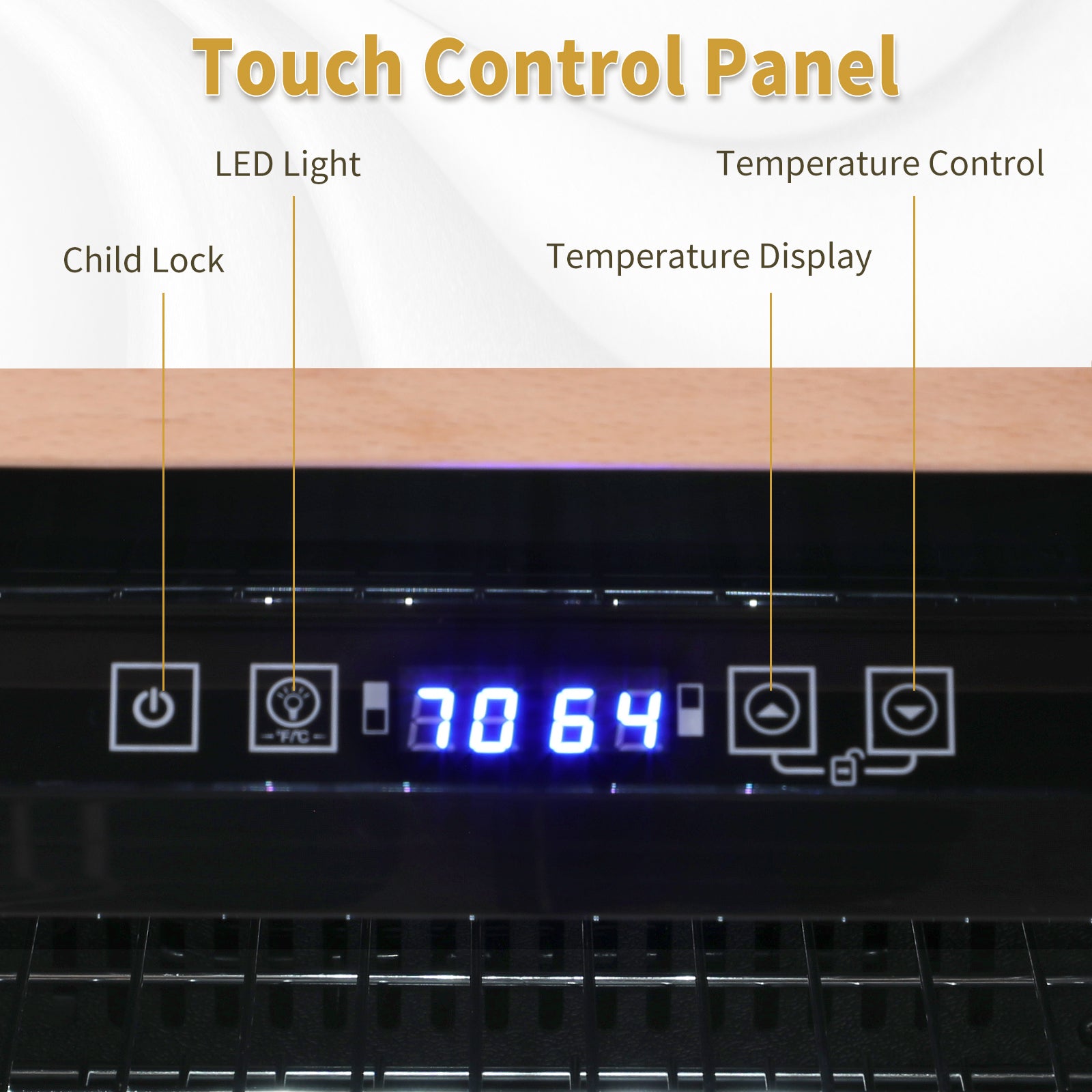 4. User-Friendly Design: Soft LED lighting makes it easy to locate your drinks even in dim settings. Clear glass door offers a clear view of your collection. The shelves, designed with durable chrome plating and stylish wooden handles, enhance both the elegance and functionality of the unit.