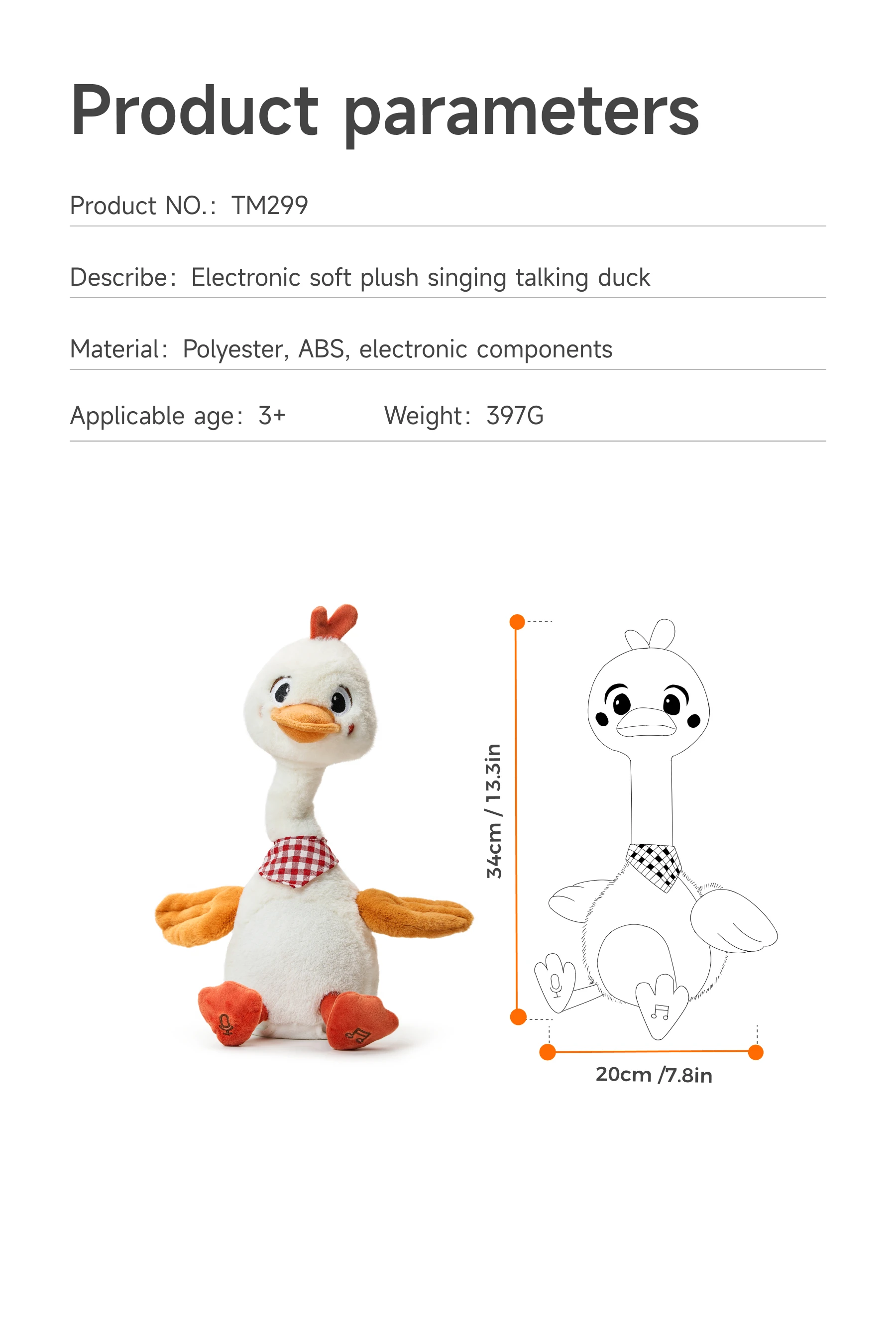 Electronic Musical Singing Soft Animal Duck Dancing Plush Toy with Repeat Talking