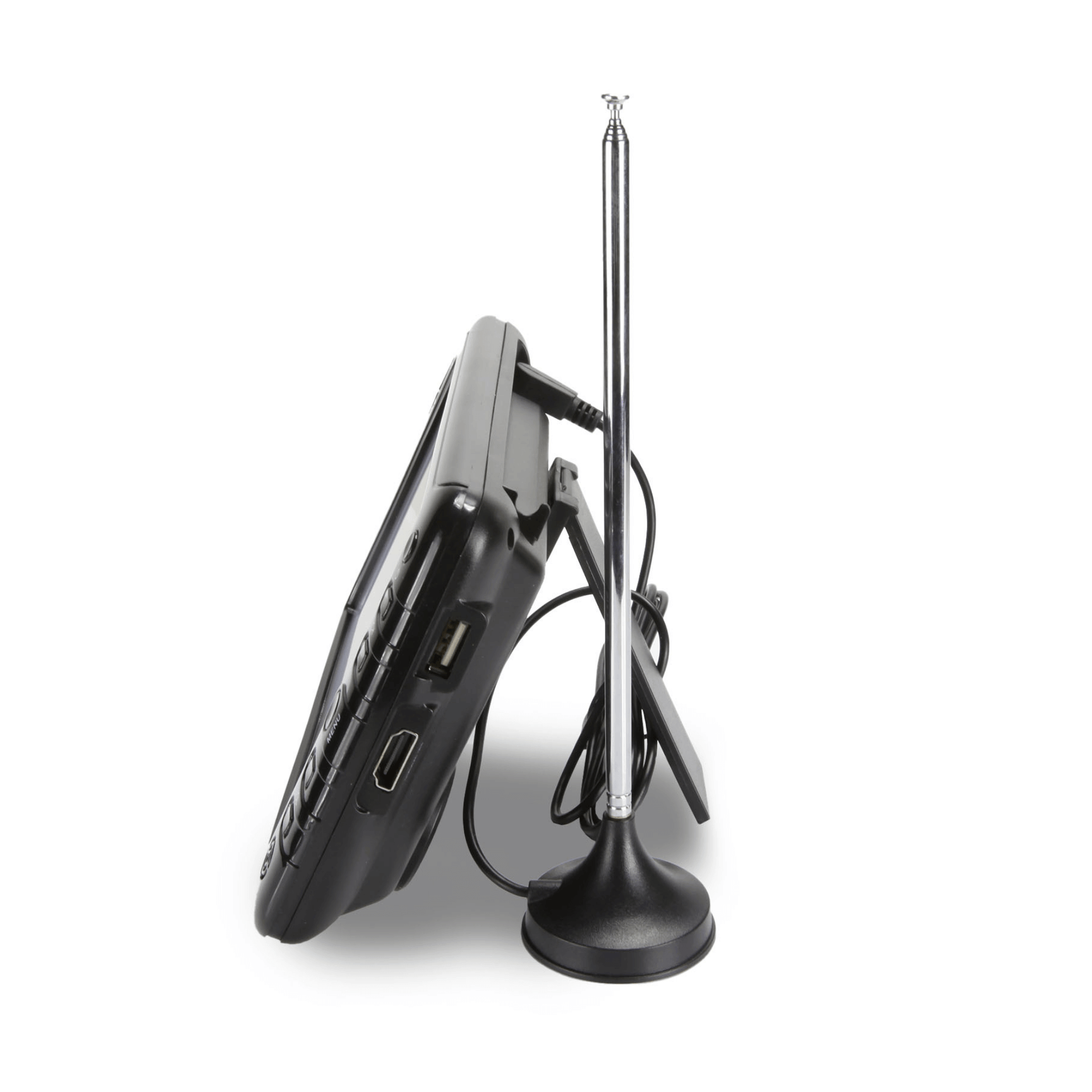 - Enjoy Digital TV Broadcasts on a 7” LCD screen (800 x 480) while on the go