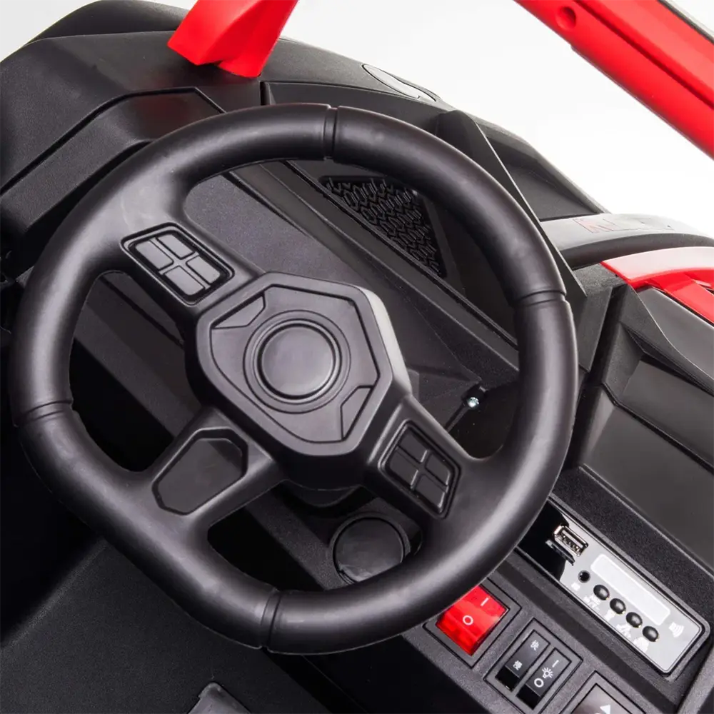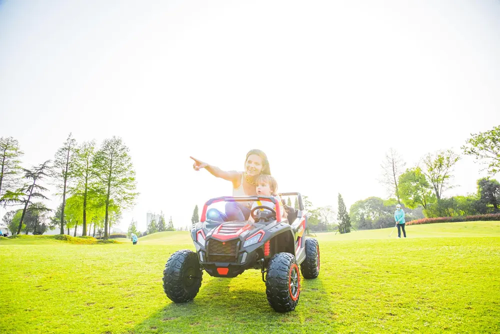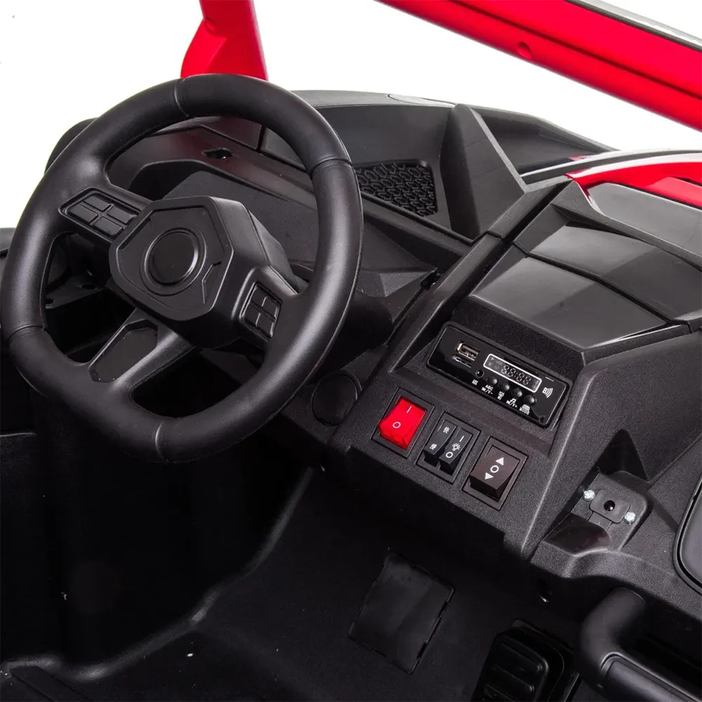 This model shines in the desert, no doubt! Its powerful 24V battery supports two kids up to 132lbs. With EVA tires, suspensions, and versatile terrain navigation, it conquers any ground effortlessly. Equipped with seat belts, parents can relax with the remote control. It offers two seats, enabling shared adventures. Your child's best travel companion plays your favorite music via the built-in mp3 player, enhancing the fun-filled journey. Get ready for an exhilarating driving experience like never before!