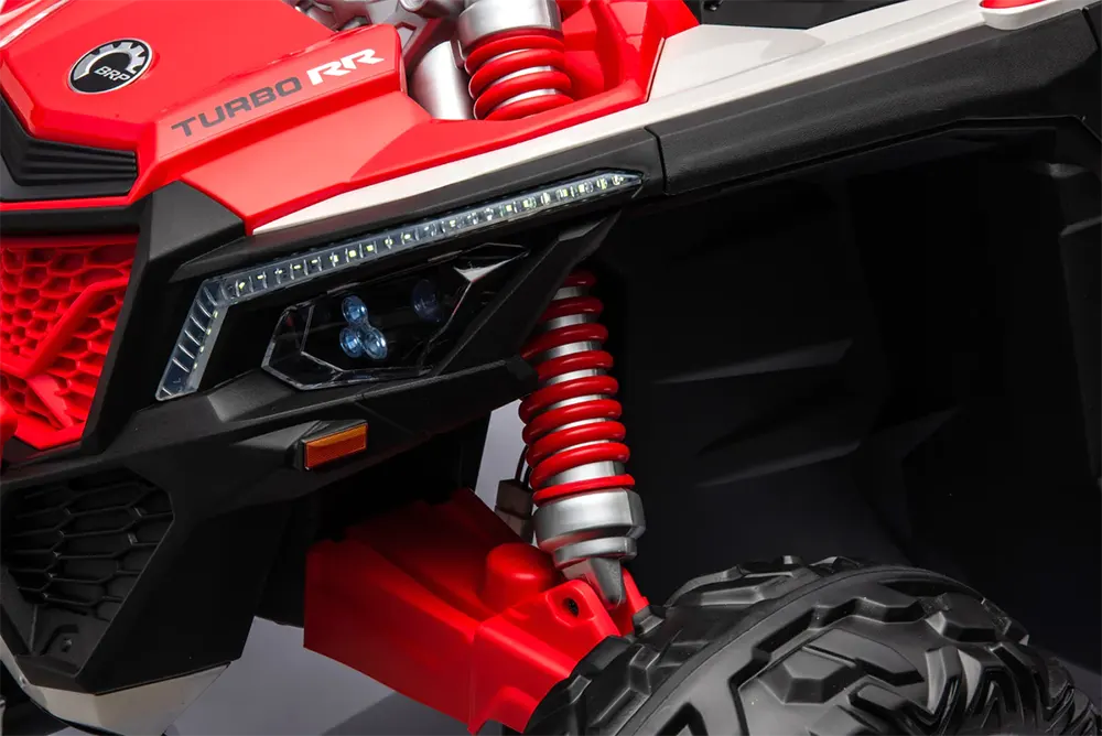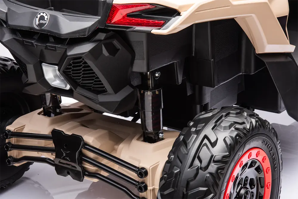 Experience the ultimate family adventure with the 24Vx2 4x4 Can Am Maverick 2 Seater Ride on UTV electric go kart for Kids! This thrilling ride-on vehicle ensures a safe and exhilarating journey for your little ones. With EVA tires for a smooth ride, LED lights for enhanced safety, and a parental remote control for speed control, fun is guaranteed. Jam to your favorite tunes using the Mp3, USB, and Aux-in feature while your child enjoys the comfort of the leather seat. Prepare your little one for an unforgettable adventure with the 24Vx2 4x4 Can Am Maverick and create lasting memories for the entire family!