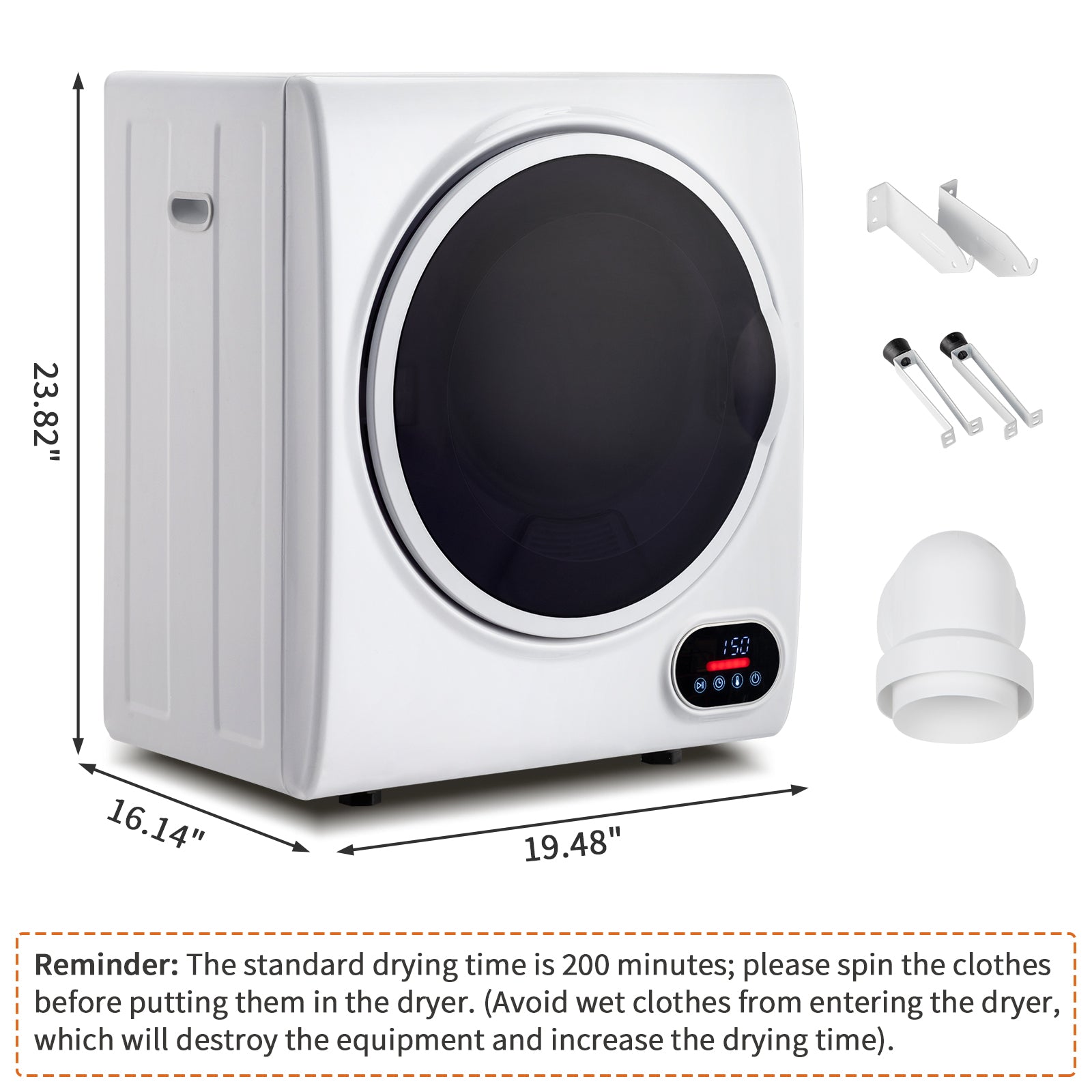 The household dryer is made of high-quality stainless steel, which is durable and has a long service life. The integrated visual window allows you to monitor the clothes as they dry. The compact and stable design can save more space, and the wall-mounted installation can be placed on a solid horizontal floor or rack, which is very suitable for apartments, dormitories, stalls or RVs. It can be easily cleaned and maintained with a soft damp cloth.