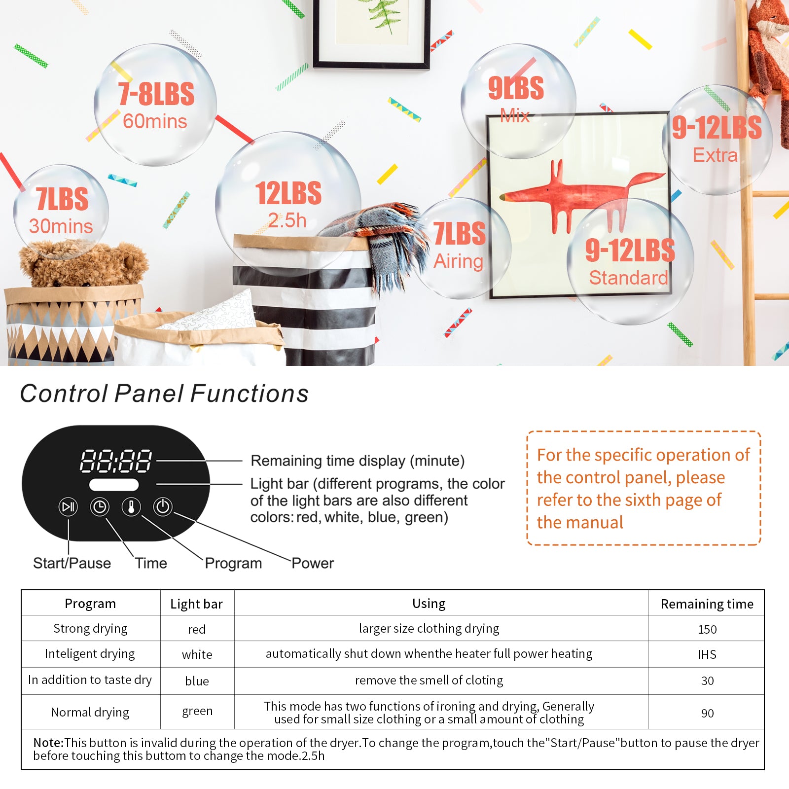 4. High quality ,Stainless steel tumble structure, two-way rotation, crease guard and stay fluffy