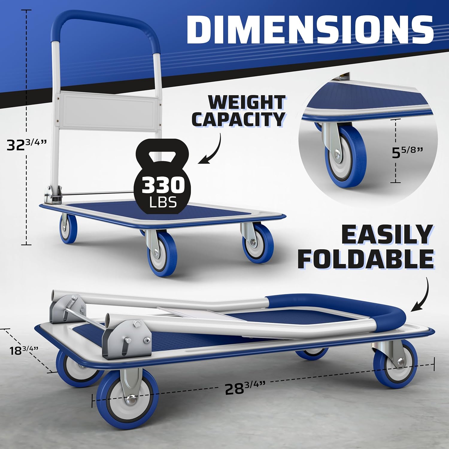 - Heavy-Duty & Durable - Built from high-quality steel, this platform dolly supports up to 330 lbs, allowing you to transport heavy loads effortlessly. Designed for long-term use, it provides superior strength and reliability without straining your back.