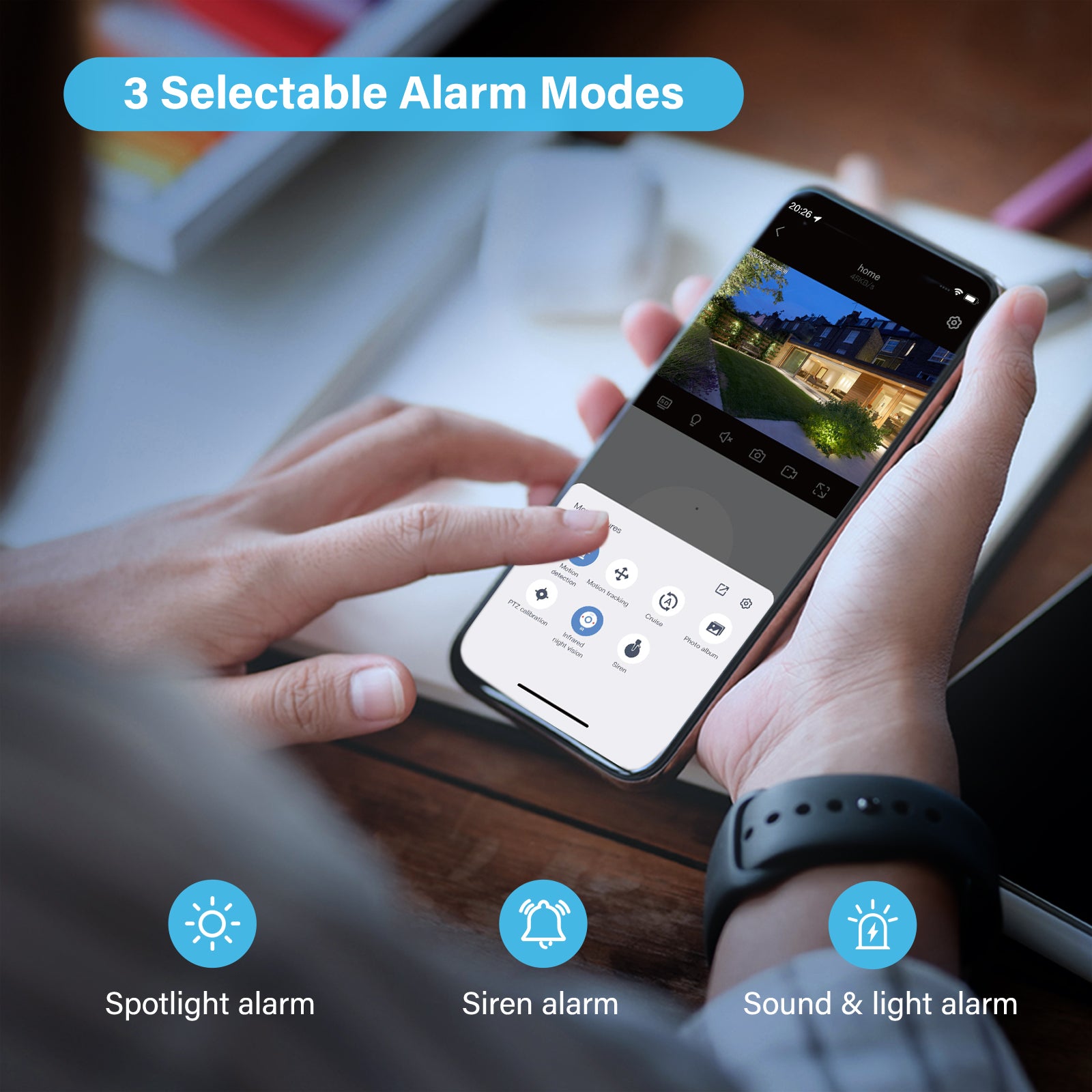 The System can reduce false alarms with a human filtering function and receive instant alerts on your phone when motion is detected. Alert notifications will be sent to your phone immediately if human motion is detected. It supports adjusted sensibility to ensure you won't be disturbed by frequent alarms.