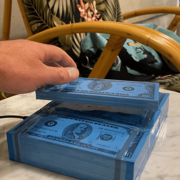 Reach for the stars with our sky blue levitating money stack. This stunning display defies gravity, levitating at a mesmerizing 1 inch off the base and rotating slowly in a 360-degree motion that is sure to amaze everyone who sees it. The levitating money stack is designed to give a slow 360° captivating rotation, which is sure to captivate your attention and set a positive tone for the rest of your day.