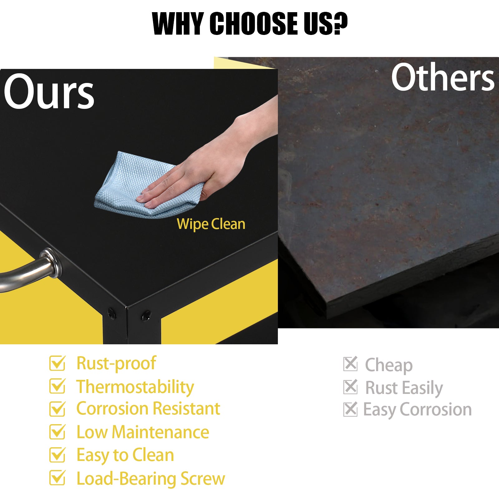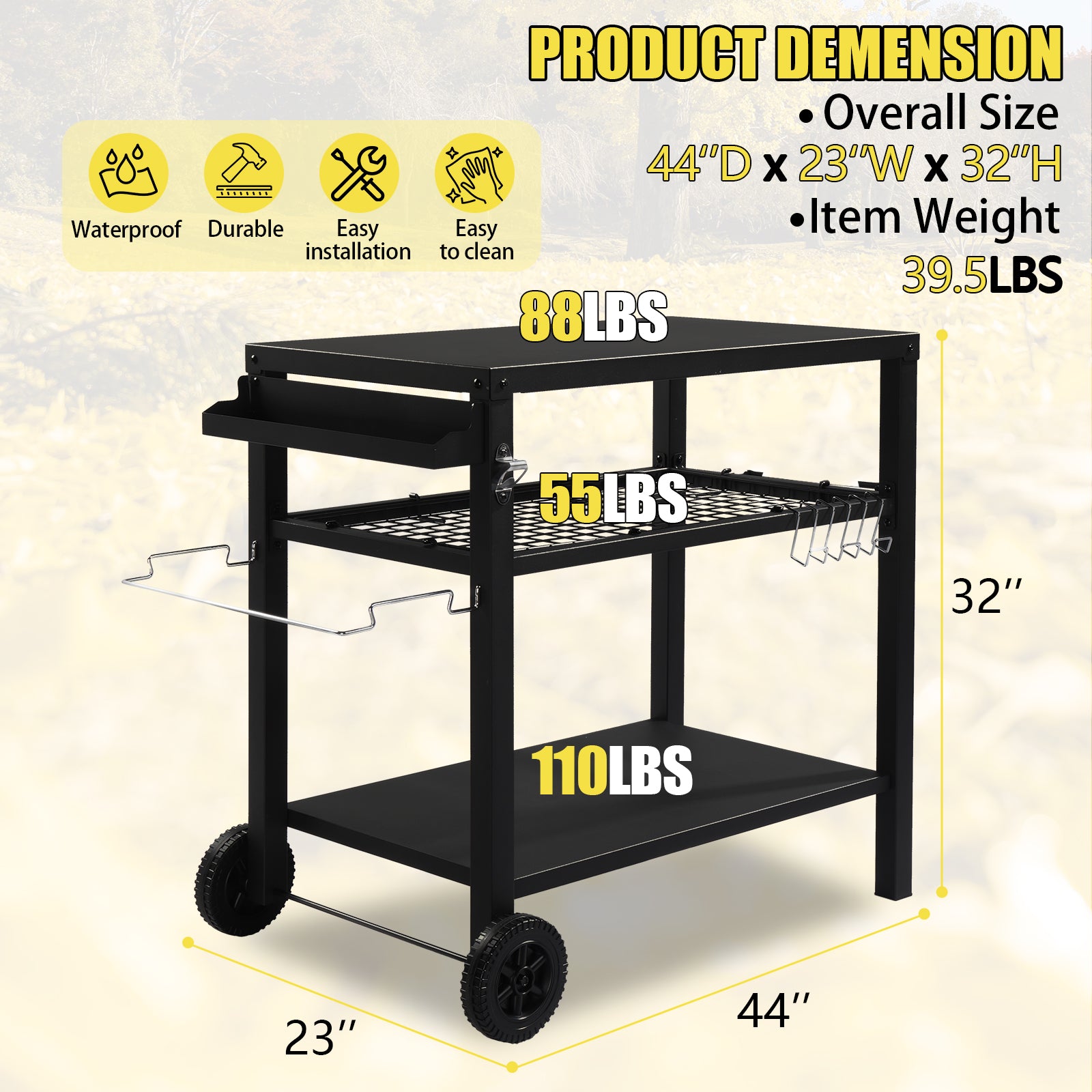 2. Ample Storage Space: Three-tier design and its thoughtful layout provide ample space for storing a variety of items such as food, utensils, and grilling tools. It is designed to maximize your storage area while maintaining easy access to your cooking essentials.