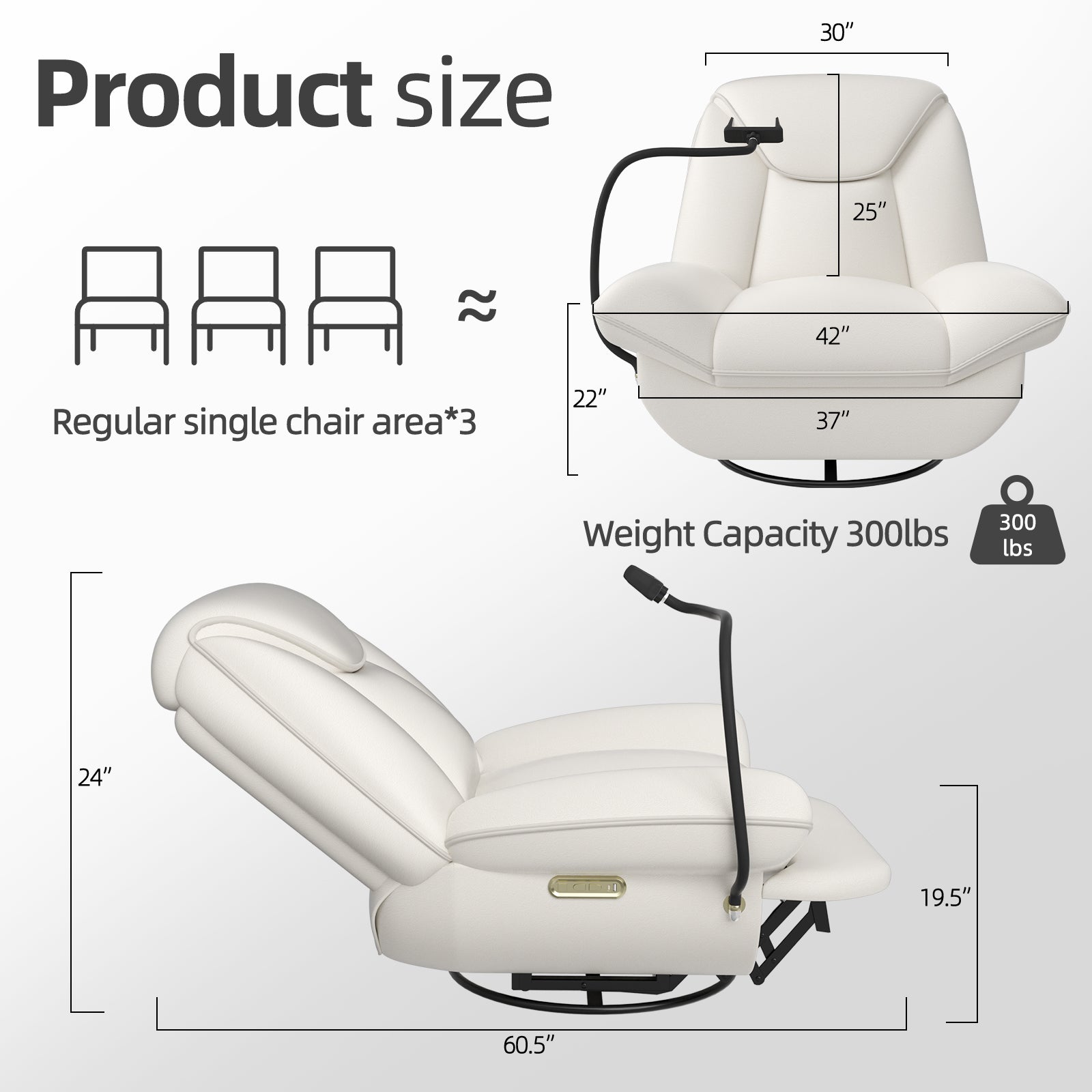 - Large Sitting Area & Adjustable Recliner: This oversized rocker recliner is designed specifically for large-sized people, with a 42-inch seating width, it completely solves your concerns about the seating width being too narrow. Effortlessly adjust your position with the 270° swivel and 150° reclining features.