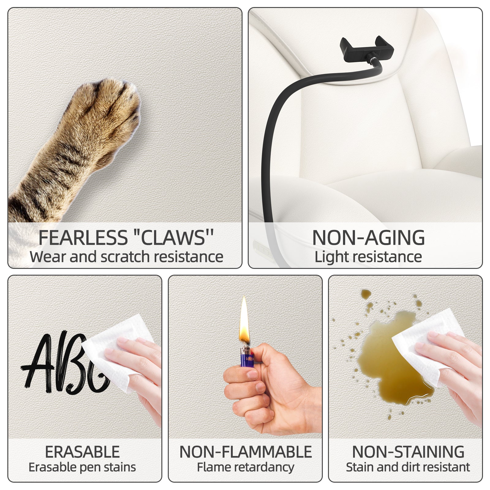 - Premium Materials: This rocker recliner chair is covered by high quality silicone leather, which can easily resist the scratching of cat's and dog's claws, is light-resistant and not easy to deteriorate, and is easy to clean the dirt. And the cushion is made of high-density foam and springs, which is both stylish and comfortable to sit for a long time, not easy to collapse. The sturdy metal frame gives you better support and can hold up to 300 pounds.