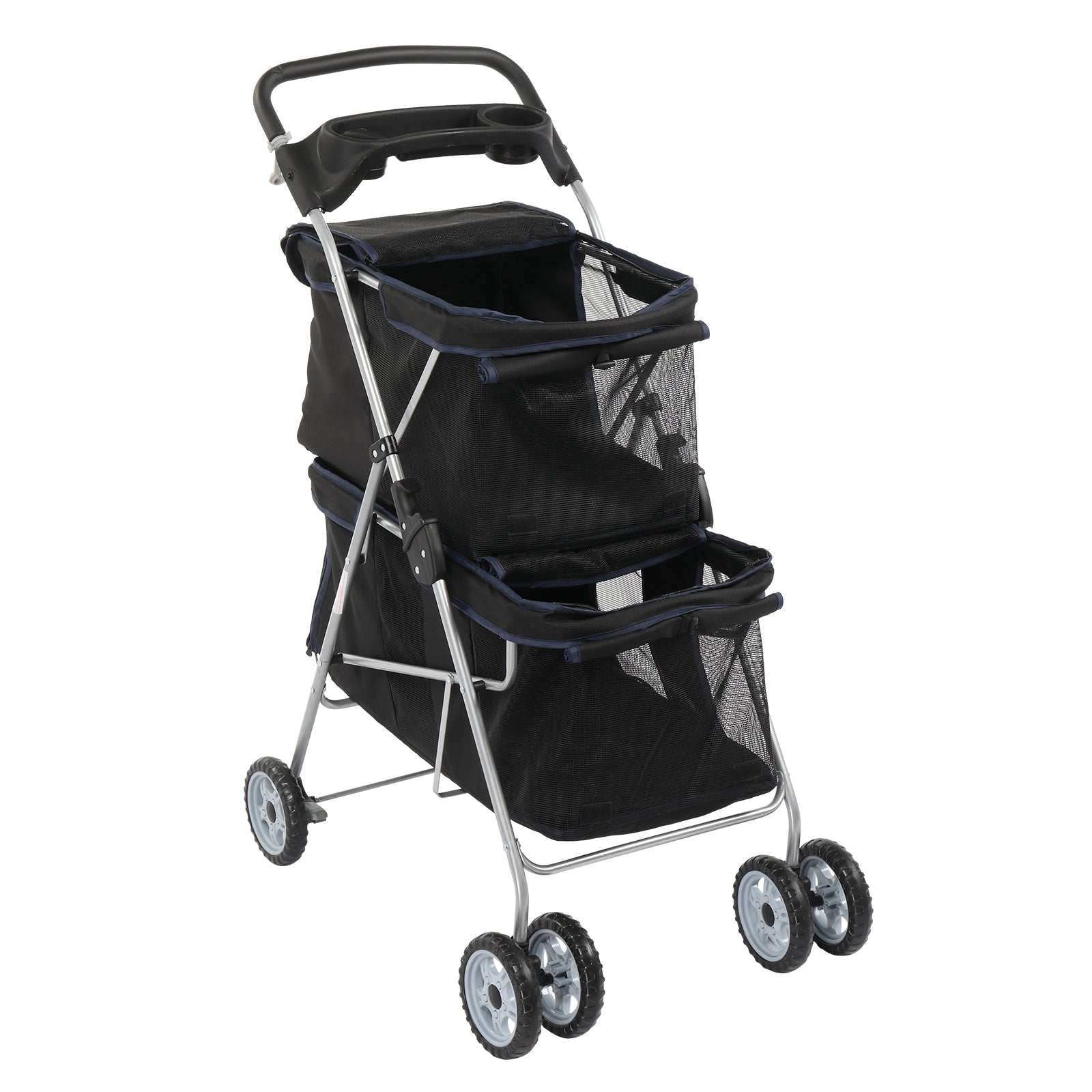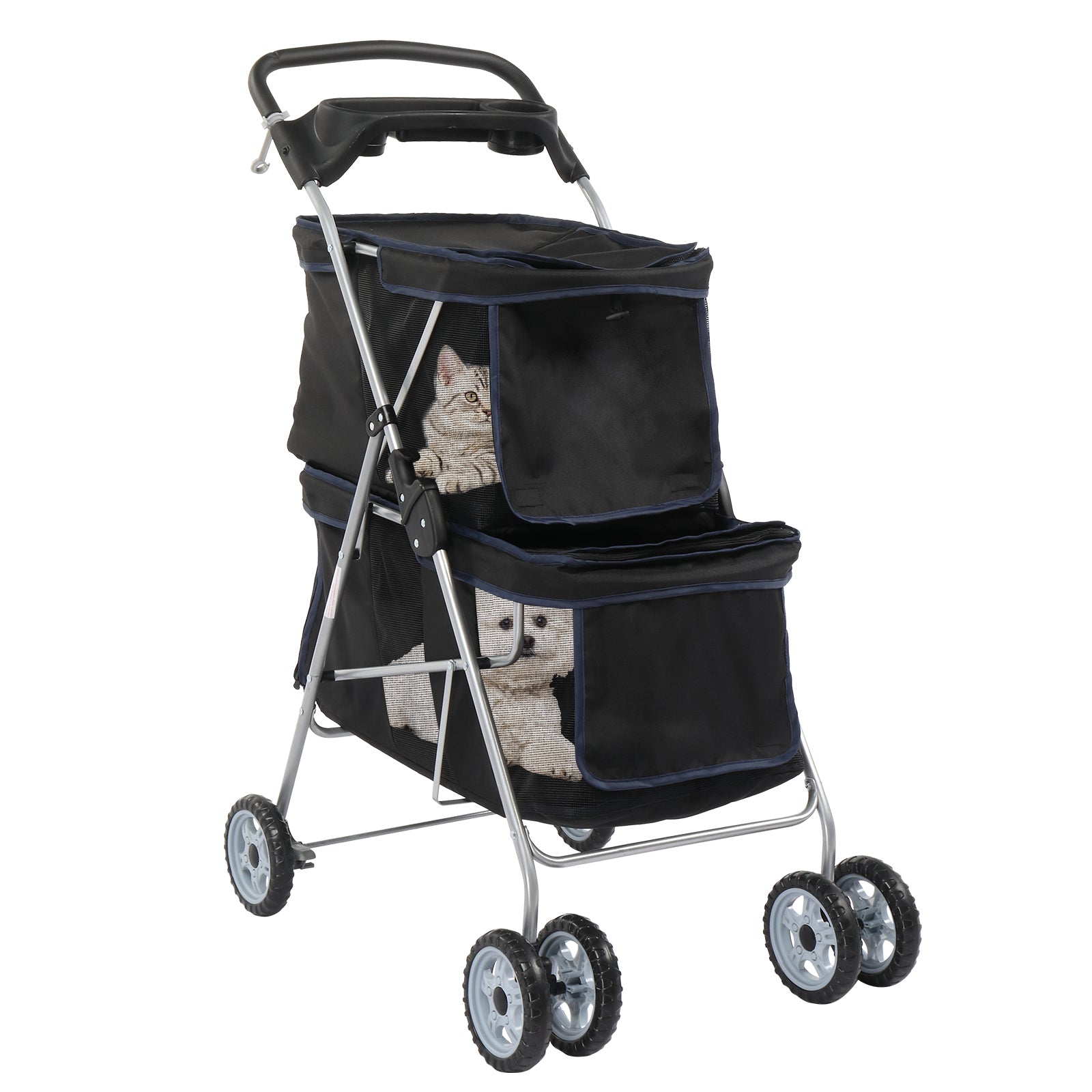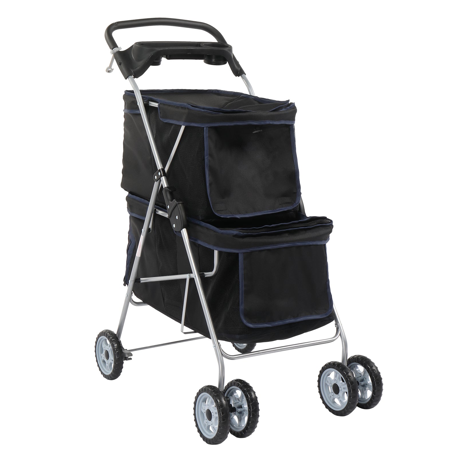 Pet Stroller for 2 Dogs and Cats, Double 4 Wheel Cat Pet Carriers Bag Jogger for Small Medium Pets, Waterproof Folding Crate with Soft Pad, Black