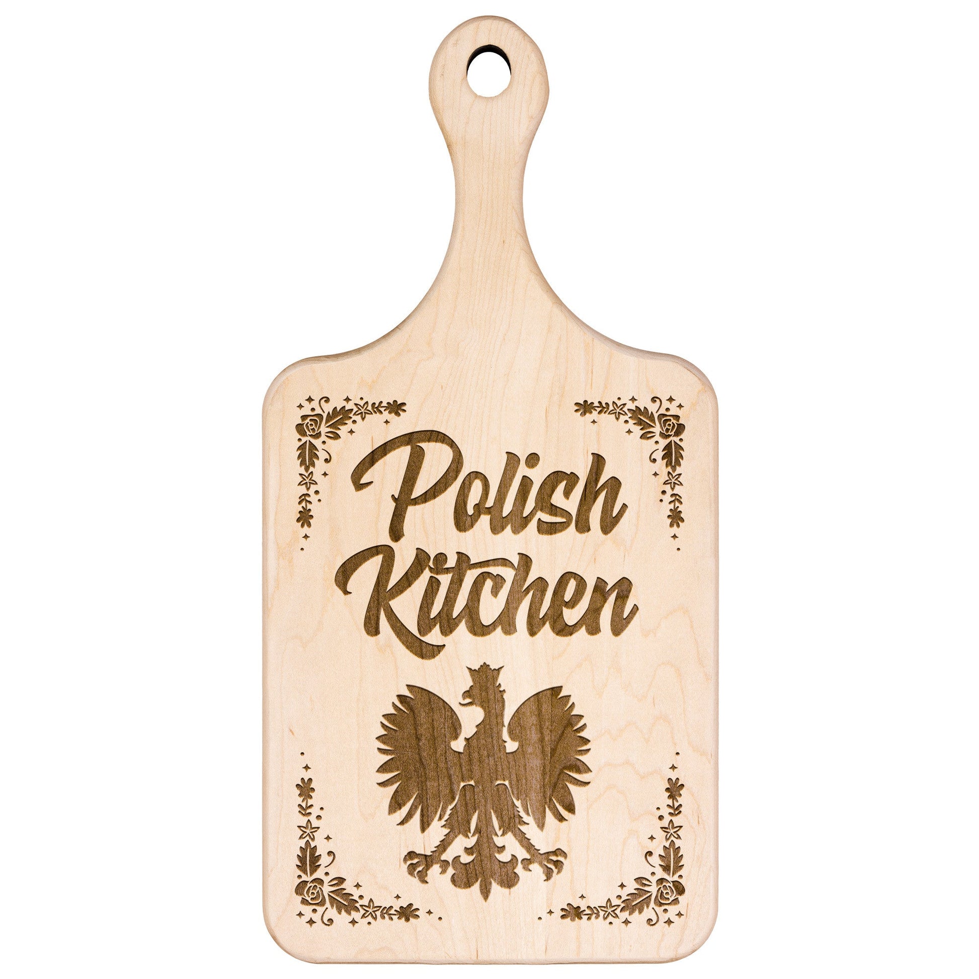 Introducing our new hardwood cutting boards - designed with the Polish cooking aficionado in mind! They come in two sizes 15" x 7"x .33 and 11.5" x 5.5" x. 33" and are crafted from 100% American hardwood, so you know you're getting only the finest quality. Whether you're whipping up babcia's famous recipes, baking fresh bread, or just chopping ingredients, these cutting boards are the perfect surface for all your culinary needs. Plus, you can even hang them on the wall as a decorative piece! Get ready to upgrade your Polish kitchen with these beautiful cutting boards!