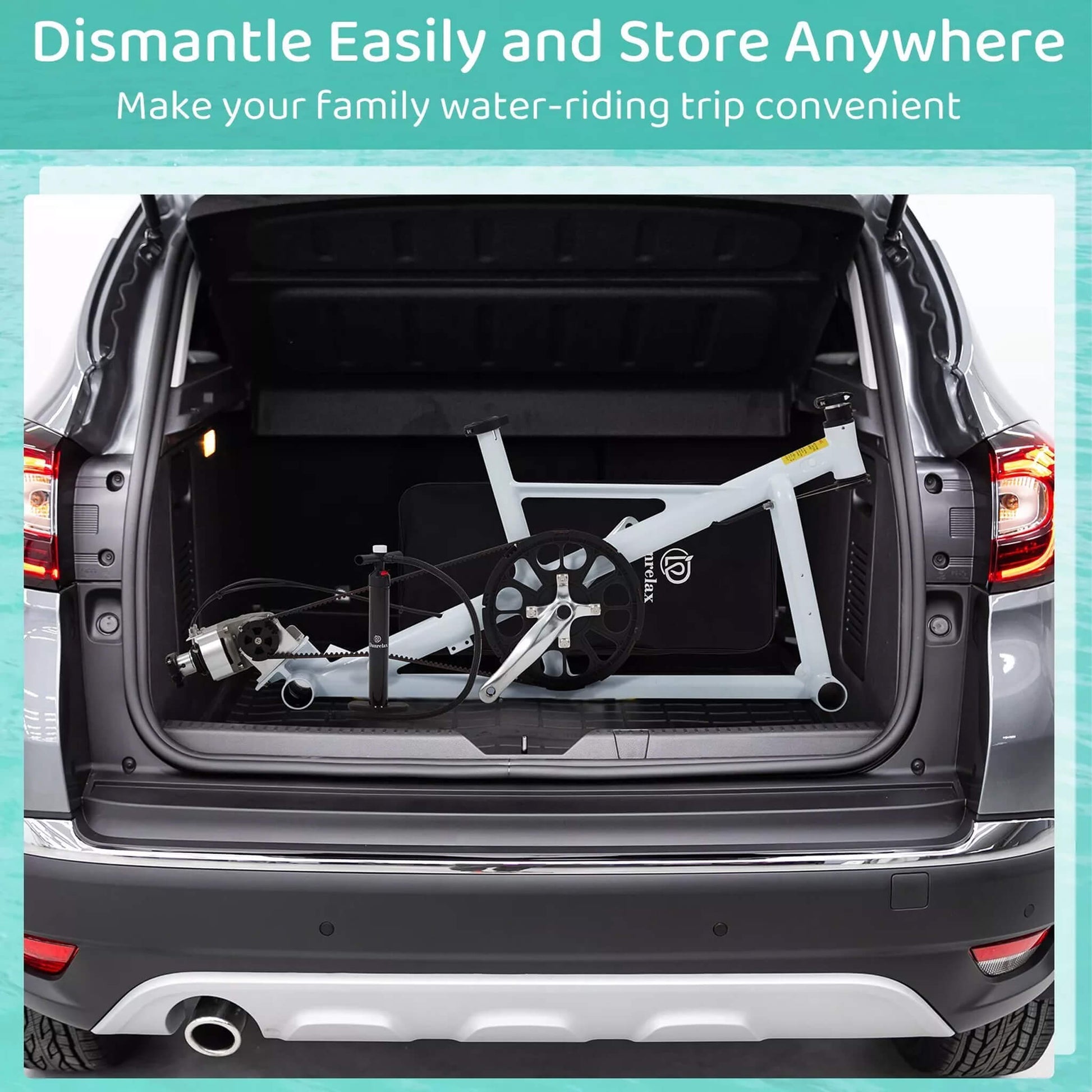 - Crafted from durable, high-quality materials, this water bike offers exceptional stability and longevity. From calm waters to gentle waves, you can glide confidently knowing this kit is engineered for resilience.