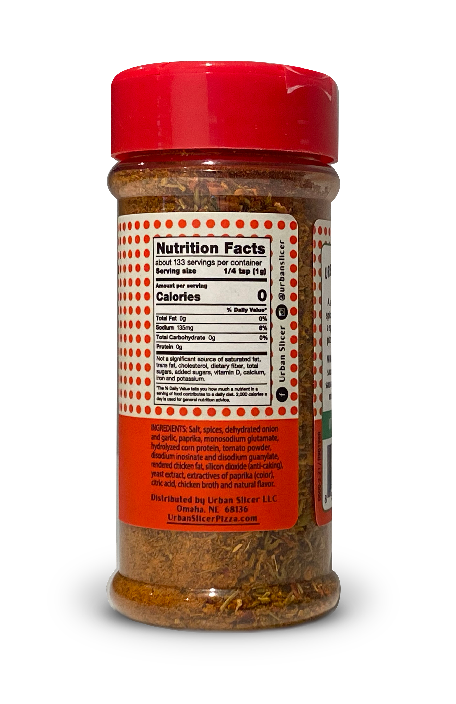 INGREDIENTS: Salt, spices, dehydrated onion and garlic, paprika, monosodium glutamate, hydrolyzed corn protein, tomato powder, disodium inosinate and disodium guanylate, rendered chicken fat, silicon dioxide (anti-caking), yeast extract, extractives of paprika (color), citric acid, chicken broth and natural flavor.
