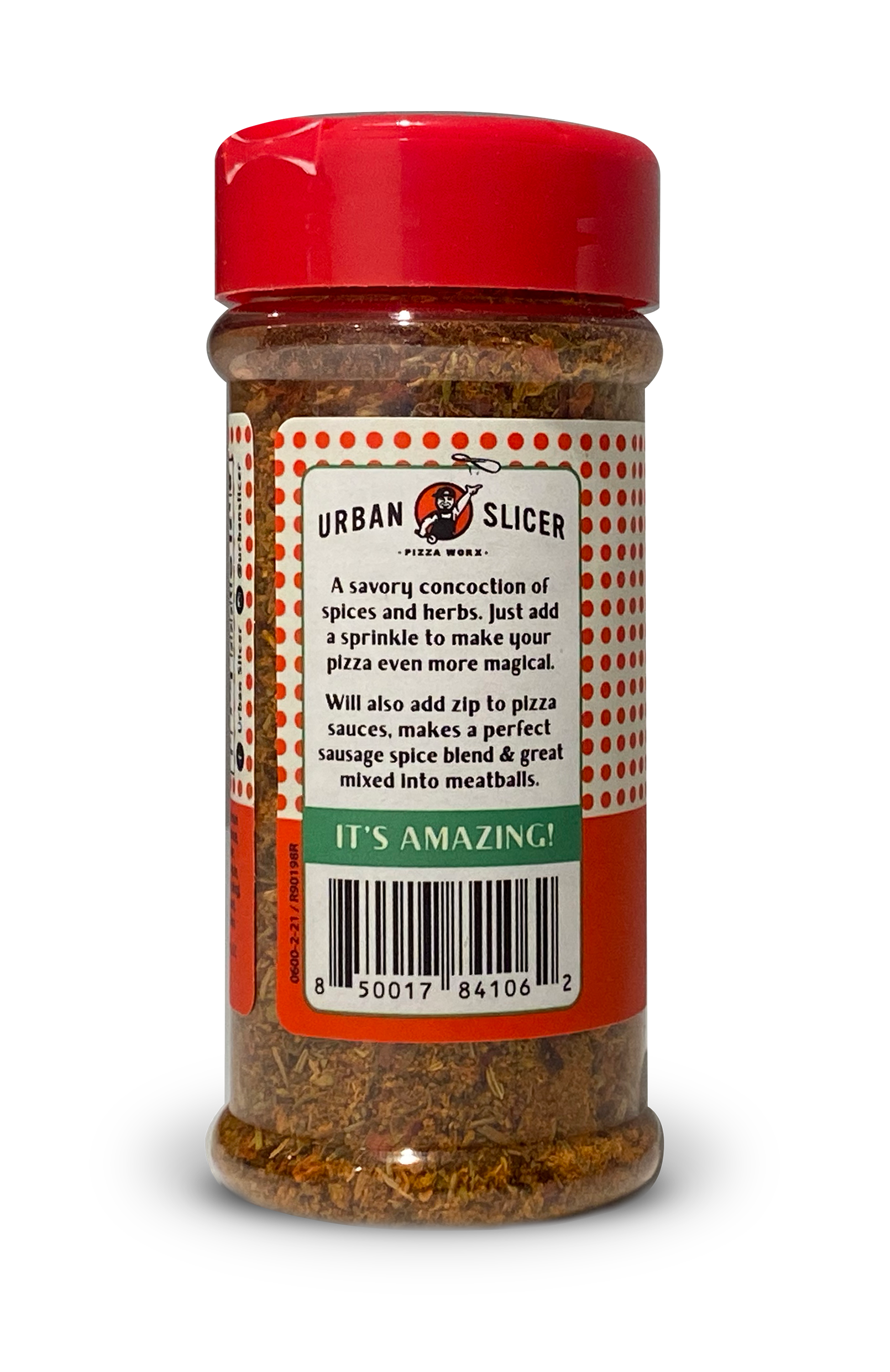 A savory concoction of spices and herbs. Just add a sprinkle to make your pizza even more magical. Will also add zip to pizza sauces, makes a perfect sausage spice blend and great mixed into meatballs.