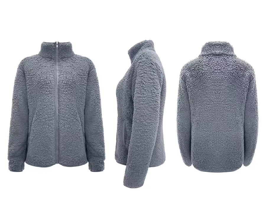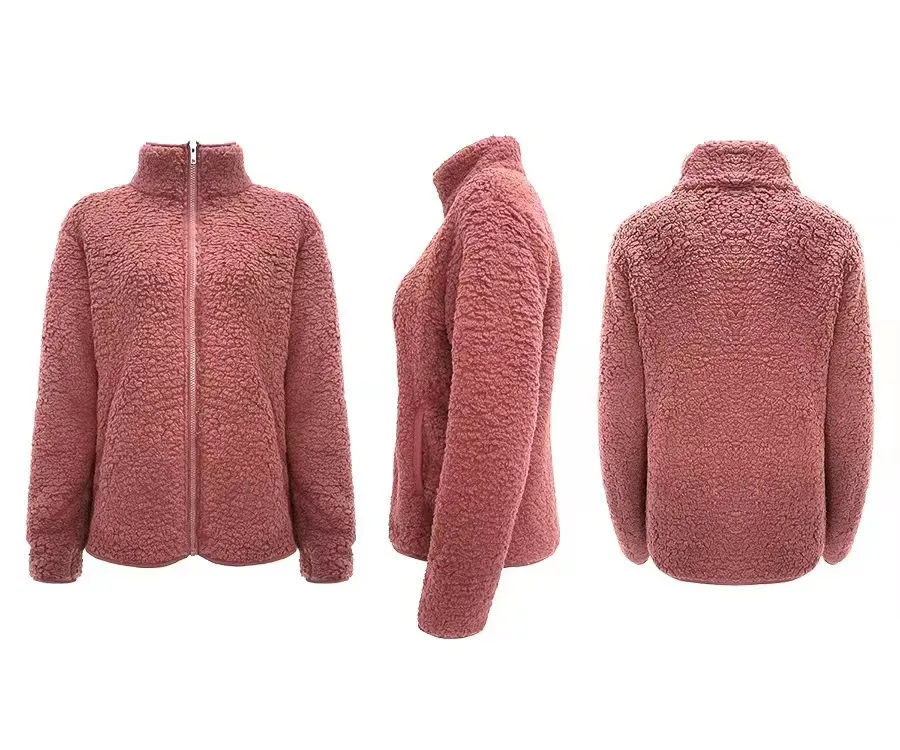 Stand Collar Solid Color Top Sweater Women's Casual Fashion Long Sleeve Zipper Bubble Velvet Coat