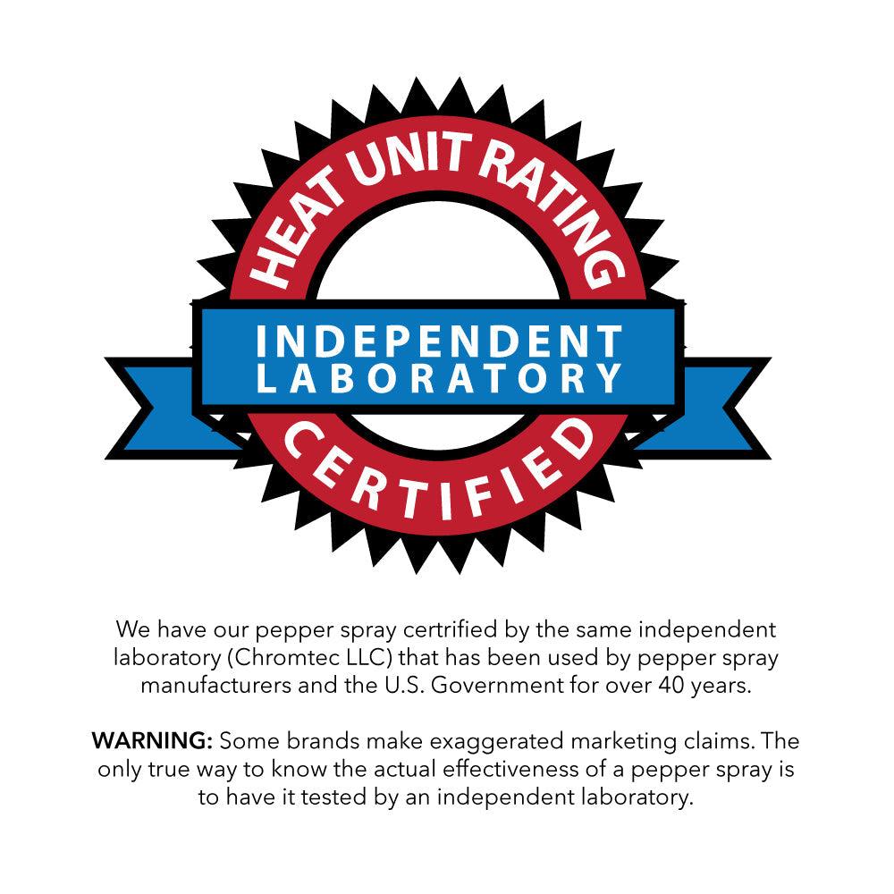 Although many brands claim to be the best, we recommend you consider the unbiased results of an independent laboratory* that tests the heat of the pepper once it is sprayed out of the can. The Certified Heat Rating (CHR) measures how hot the pepper spray will be once it comes in contact with your attacker.