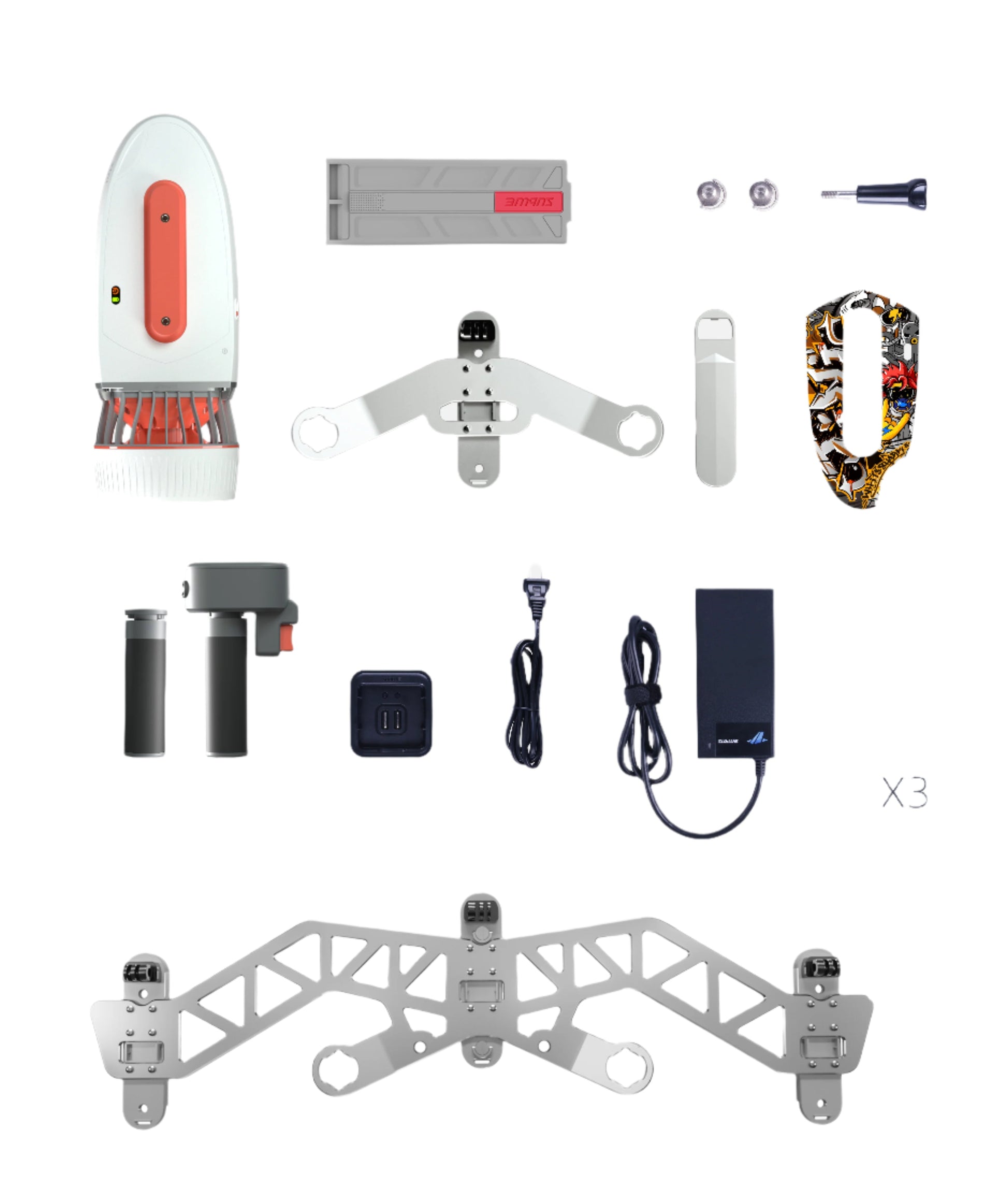Modular scooter, freely assemblable. Enjoy double or triple thrust, and pair it with various accessories such as floating boards, paddle board power sets, etc. to have fun in the underwater world!