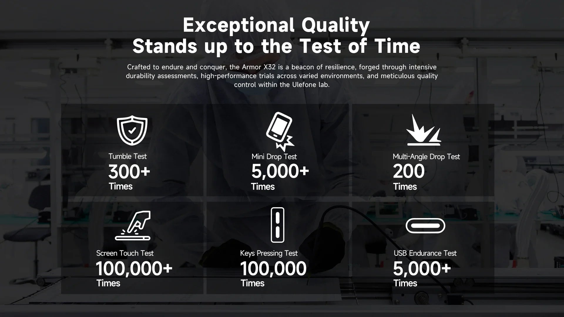 Armor X32 is splash, water, and dust resistant and was tested under controlled laboratory conditions with a rating of IP68 under IEC standard 60529 (maximum depth of 1.8 meters up to 30 minutes). Charger and accessories are not water-resistant. Splash, water and dust resistance are not permanent and might decrease as a result of normal wear. Do not attempt to charge a wet Armor 28 Ultra. Liquid damage not covered under warranty.