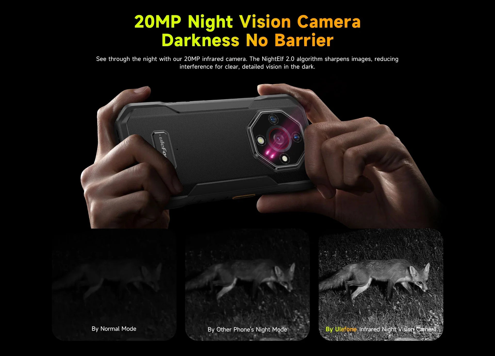 See through the night with our 20MP infrared camera. The NightElf 2.0 algorithm sharpens images, reducing interference for clear, detailed vision in the dark.