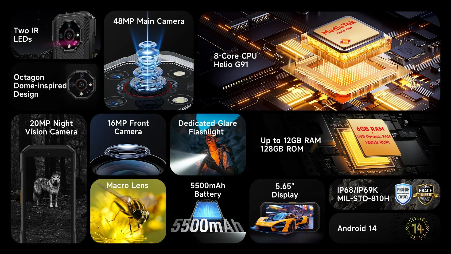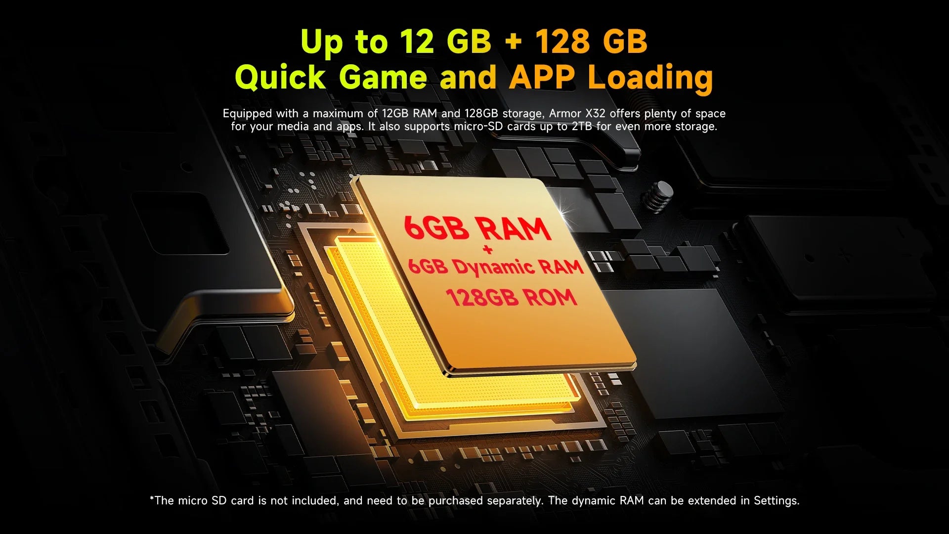 Equipped with a maximum of 12GB RAM and 128GB storage, Armor X32 offers plenty of space for your media and apps. It also supports micro-SD cards up to 2TB for even more storage.