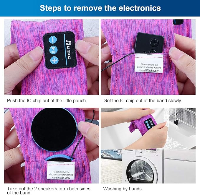 - Washing Instructions: Machine-washable headband (speakers easily removable)