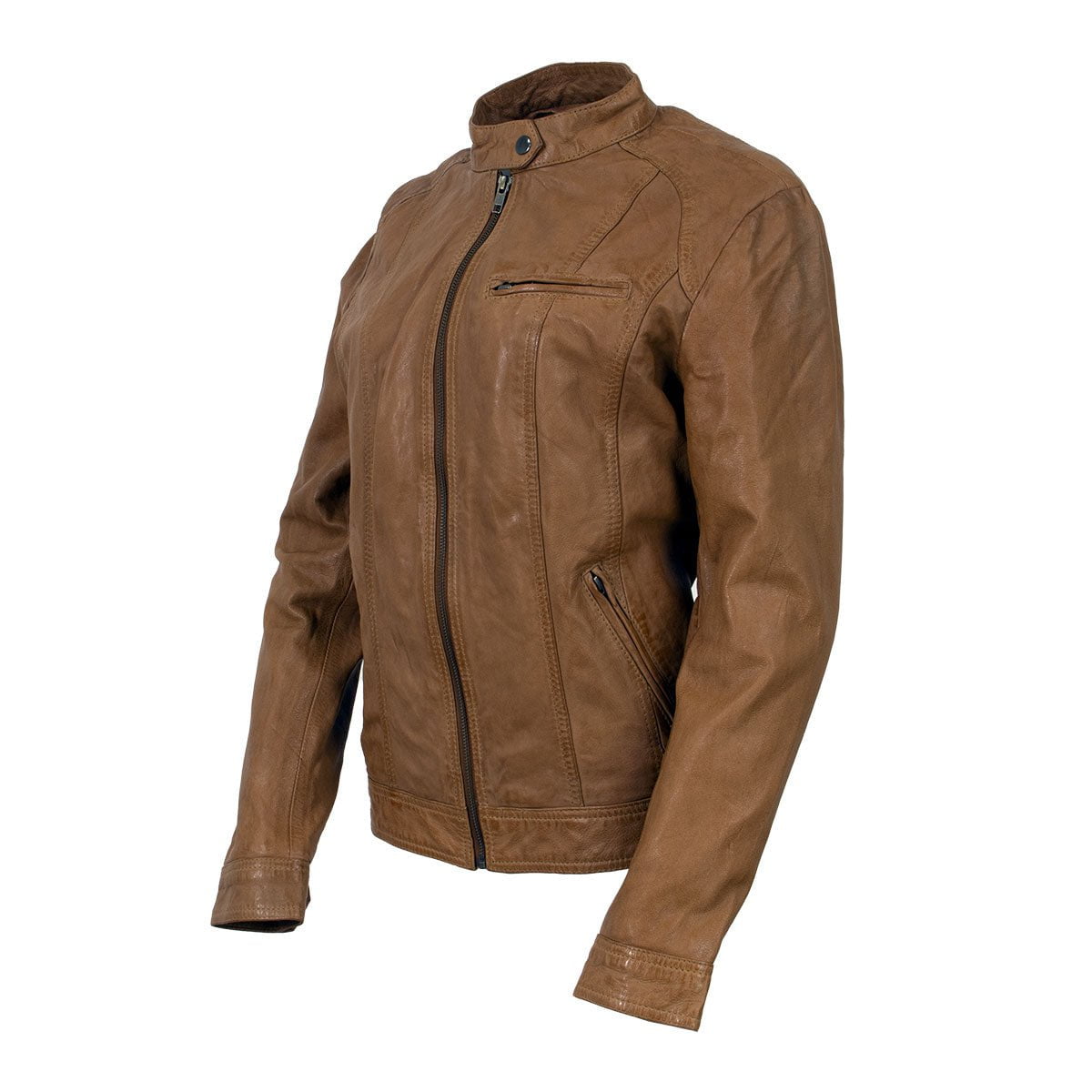 Women's Vintage Cognac Biker Style Casual Leather Jacket